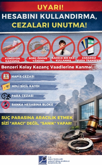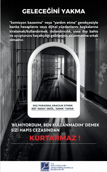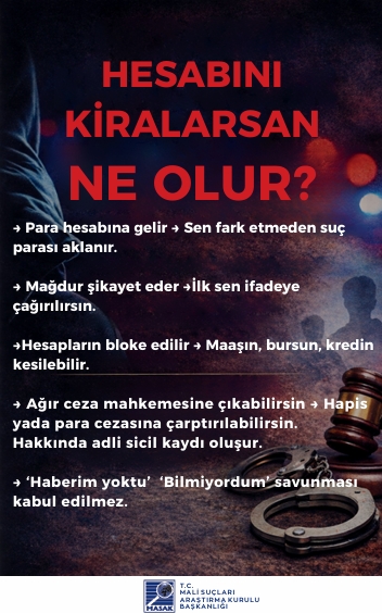 Sevgili Öğrencimiz, Son dönemde üniversite öğrencilerine ait banka hesapları ve dijital cüzdanların üçüncü kişiler tarafından kullanılması suretiyle dolandırıcılık, yasa dışı bahis ve uyuşturucu kaçakçılığı gelirlerinin aklanması gibi olaylarda ciddi artış yaşanmaktadır. Kendi adınıza kayıtlı banka hesaplarınızın veya dijital cüzdanlarınızın; “komisyon kazanma”, “borç ödeme yardımı”, “sadece bir kez kullanma”, “zararsız para transferi” veya benzeri gerekçelerle başkaları tarafından kullanılmasına bilerek ve isteyerek izin verilmesi, Türk Ceza Kanunu ve ilgili mevzuat kapsamında cezai ve hukuki sorumluluk doğurabilir. Hesaplarınız üzerinden gerçekleştirilen işlemlerden, işlemi fiilen yapan kişi kim olursa olsun, hesap sahibi olarak siz sorumlu tutulabilirsiniz. Hesaplarınızı başkalarına kullandırmanız durumunda; adli soruşturma ve kovuşturmalara muhatap olmanız, adli sicil kaydı oluşması, bankalar tarafından riskli müşteri olarak değerlendirilmeniz, banka hesaplarınıza kısıtlama getirilmesi, kredi ve kredi kartı başvurularınızın reddedilmesi, adli kontrol tedbirleri (yurtdışı çıkış yasağı dâhil) uygulanması ve mağdurlar tarafından tazminat davaları açılması söz konusu olabilir. Bu tür durumlarda “bilmiyordum”, “yardım etmek istedim” veya “sadece aracıyım” şeklindeki açıklamalar hukuken koruyucu olmayabilir. Tanıdığınız ya da tanımadığınız kişilerden gelen, hesap veya IBAN paylaşımı karşılığında kazanç vaadi içeren her türlü teklifi reddetmeniz ve şüpheli durumları derhâl güvenlik yetkililerine bildirmeniz önem arz etmektedir.